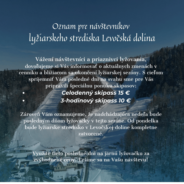LYŽIARSKÁ SEZÓNA 2025/2026 V RESORTE LEVOČSKÁ DOLINA