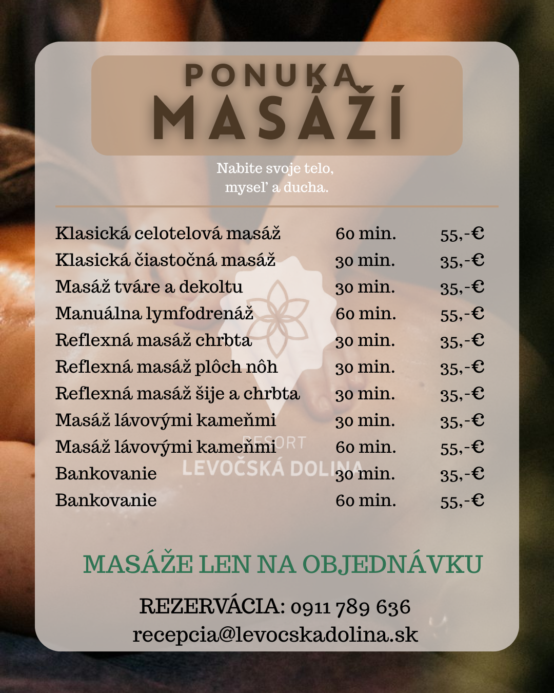 Pri záujme o uzavretú spoločnosť vo wellness účtujeme 60 € / hodina.